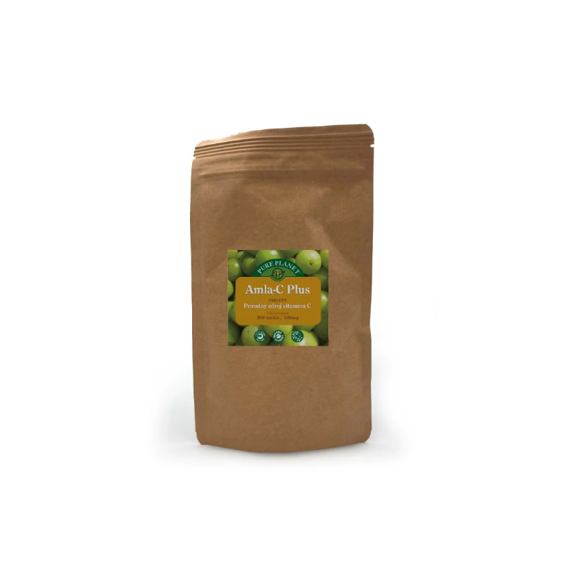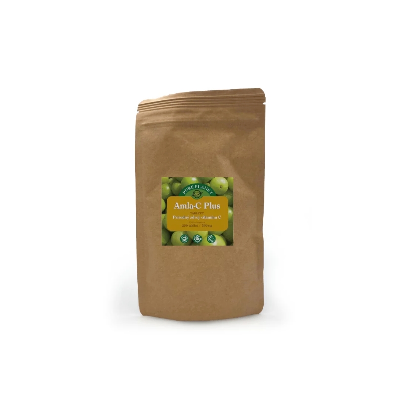Amla-C Plus je výživový doplněk s obsahem přírodního vitamínu C a širokého spektra bioflavonoidů z bobulového ovoce amla (80 %) a spiruliny (20 %) ve formě tablet. Bobule amla (nazývané také indický egreš) pocházejí z jihovýchodní Asie a jsou považovány za jeden z nejbohatších přírodních zdrojů vitamínu C. Jsou 12x vstřebatelnější než syntetický vitamín C. Amla je silný antioxidant a je hojně využívána jako přirozená ochrana proti bakteriím a virům, často se využívá i na podporu trávení. Přečtěte si více o amle a jejích benefitech →.
