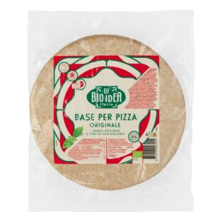 Předpečené těsto na pizzu připravené z BIO pšeničné mouky. Upečené podle tradičního místního receptu z vesničky Borgolavezzaro v italském regionu Piemonte. Pizza základ stačí obložit oblíbenými surovinami, zapéct v troubě a můžete si vychutnat pravou chuť originální italské pizzy.