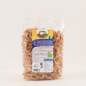 Špaldové fusilli vyrobené z italské BIO celozrnné špaldové krupice (T. dicoccum). Obsahují vlákninu, mají nižší glykemický index a dokážou zasytit na delší dobu. Jsou charakteristické svou barvou a specifickou chutí. Jejich příprava je jednoduchá a rychlá, nerozvaří se, nelepí se. Výborně chutnají s omáčkami na těstoviny nebo pestem.