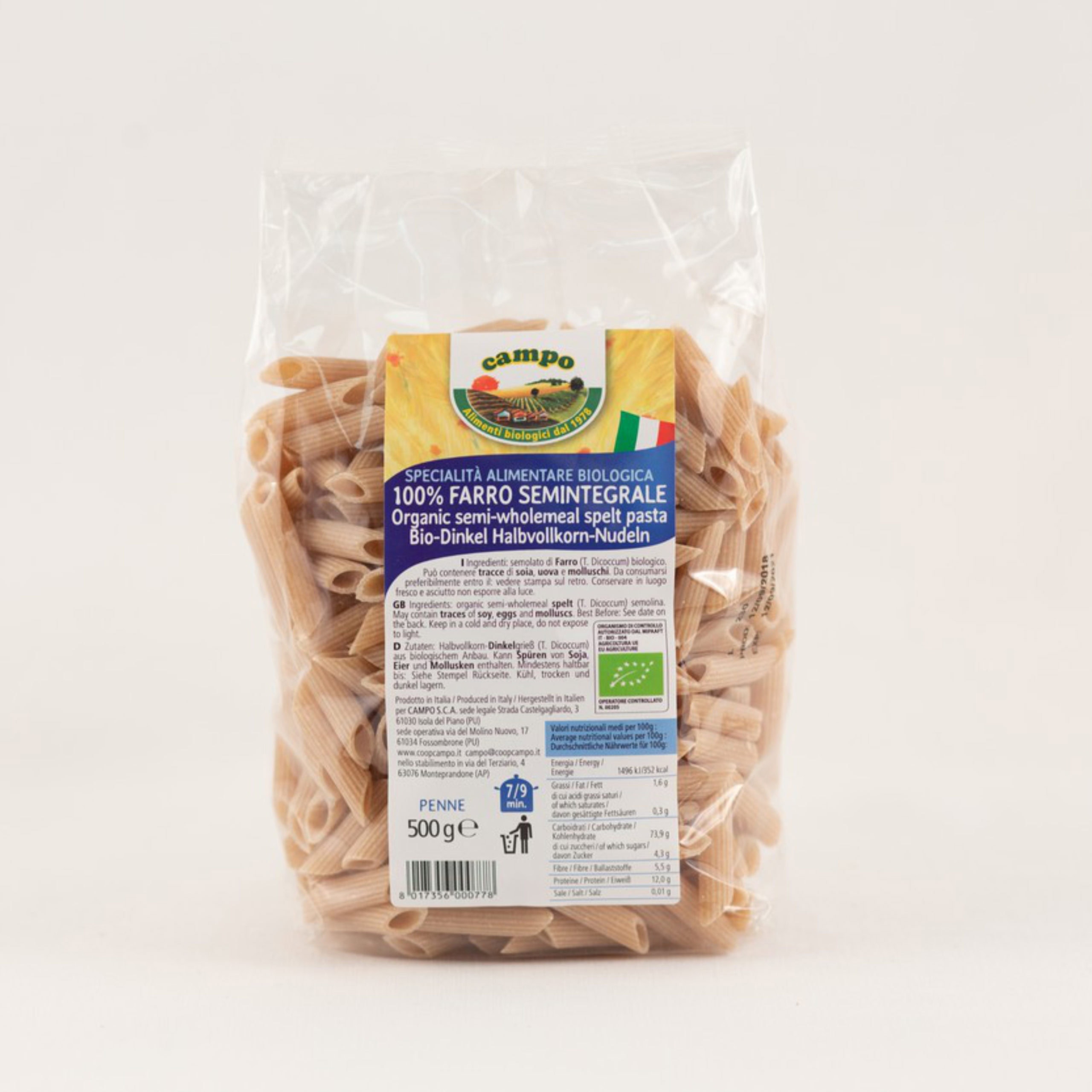 Těstoviny penne vyrobené z italské BIO polozrnné špaldové krupice. Tento typ těstovin je ten správný kompromis pro všechny, kteří preferují méně výraznou chuť než mají klasické celozrnné těstoviny. Aby zůstaly zachovány nutriční vlastnosti krupice, penne se suší pomalu při nízké teplotě. Jejich příprava je jednoduchá a rychlá, nerozvaří se, nelepí se. Výborně chutnají s omáčkami na těstoviny nebo pestem.