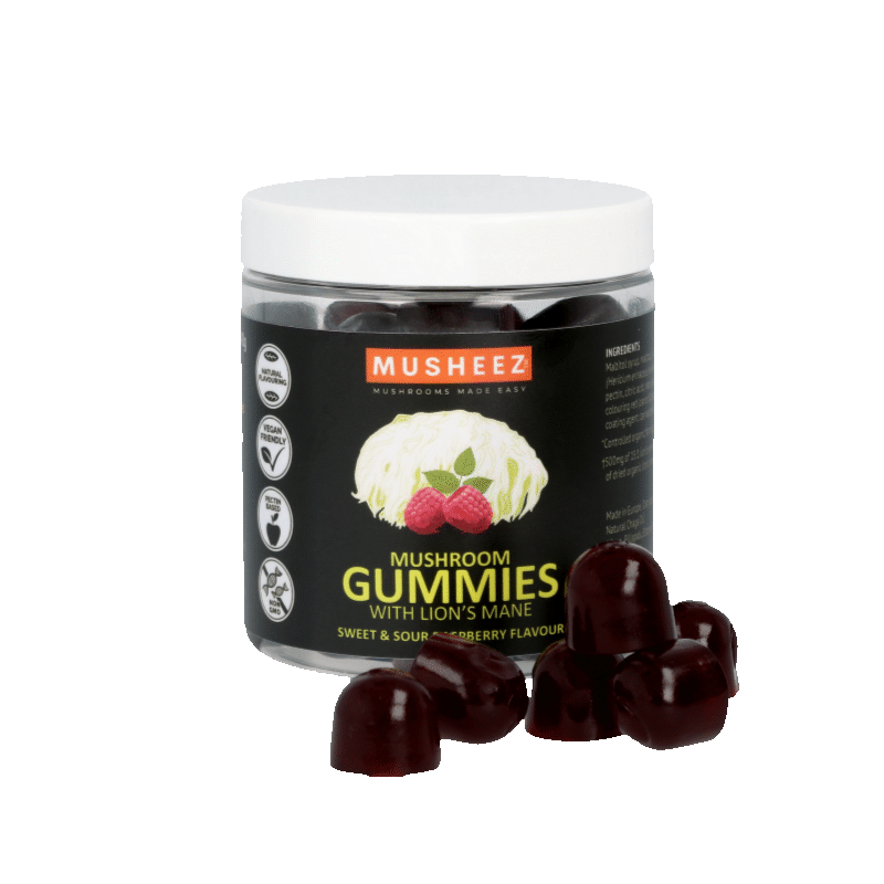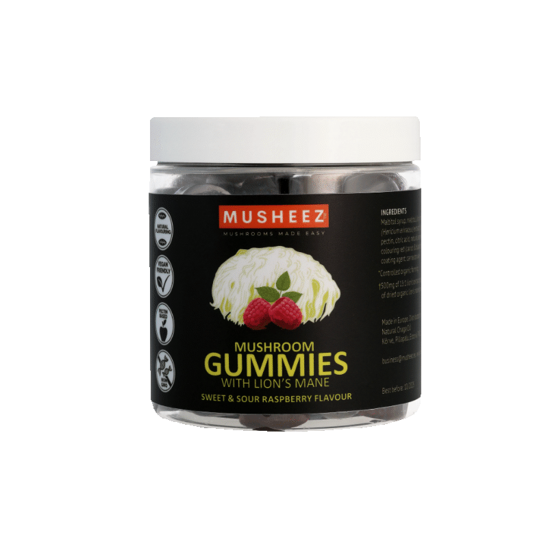 Vychutnejte si osvěžující malinovou příchuť veganských gumových bonbónů s extraktem z lví hřívy (Hericium erinaceus), která je známá svými příznivými účinky na zdraví mozku a nervový systém. Každý bonbón obsahuje vysoce kvalitní BIO extrakt z lví hřívy/hericia s vysokou koncentrací beta-glukanů (20 %) a polysacharidů (30 %).