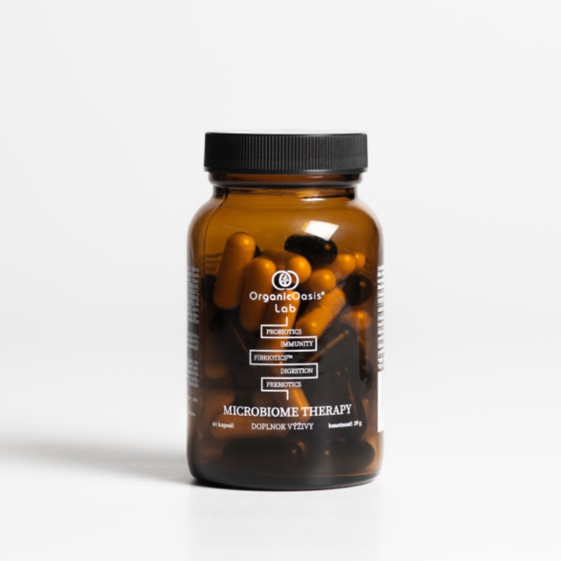 Microbiome Therapy je doplněk výživy ve formě kapslí s obsahem 14 cílových živých probiotických kmenů včetně prebiotik a fermentovaného prášku FIBRIOTICS™ z 36 druhů ovoce a zeleniny pro podporu trávení, imunity a úlevu při alergiích (senná rýma, astma, alergická dermatitida). Díky obnovenému složení je vhodný i pro lidi s histaminovou intolerancí.