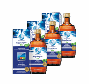 Regulatpro® Bio je tekutý enzymový doplněk stravy vyrobený kaskádovou fermentací z bio ovoce, zeleniny, ořechů a bylin, obohacený o přírodní vitamín C z třešně aceroly1, který podporuje imunitní systém, přispívá ke zdravému energetickému metabolismu, zmírňuje únavu a vyčerpání. Masivně zvyšuje dostupnost ATP (adenosintrifosfátu) v buňkách a stimuluje enzymový systém. Regulatpro® Bio je ideální doplněk stravy při nesprávném životním stylu.