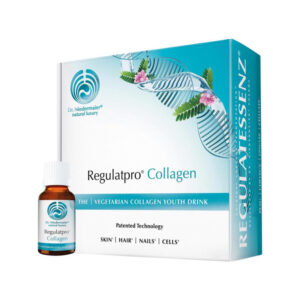 Regulatpro® Collagen je omlazující kosmetický beauty drink. Obsahuje 25 % vylepšeného kaskádově fermentovaného koncentrátu REGULATESSENZ® 2.0. a v kombinaci s veganskou kyselinou hyaluronovou, přírodní kyselinou křemičitou, niacinem, vitamíny (E, C, D a B12), zinkem, mědí, selenem, enzymy, antioxidanty a jedinečným vegetariánským kolagenem vyživuje a regeneruje pleť, vlasy a nehty na buněčné úrovni1. → Produkty Regulatpro® Hyaluron a Regulatpro® Collagen budou brzy měnit své složení. Balení s původní recepturou doprodáváme a budou dostupná jen do vyprodání zásob.