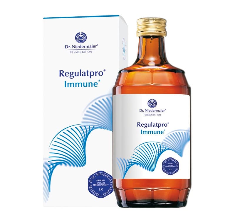 Regulatpro® Immune je veganský výživový doplněk stravy s obsahem přírodních, fermentovaných vitamínů, minerálů, probiotik, enzymů a sekundárních rostlinných látek, vyrobený podle nově patentovaného výrobního postupu kaskádové fermentace 2.0. Bakterie mléčného kvašení použité při kaskádové fermentaci 2.0 extrahují sekundární rostlinné látky z vysoce kvalitních rostlinných složek a štěpí je na biologicky dostupnou molekulární úroveň. Proto je tělo dokáže jednoduše a snadno absorbovat.